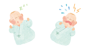 昼夜の区別がないため、2~3時間くらいの短い周期で目を覚まし、おっぱいやミルクを飲んでまた眠ることを繰り返します。中には眠ったと思ったらすぐに起きる赤ちゃんもいるので、しょっちゅう泣いていると感じることも多いです。また、ほとんどの赤ちゃんが生後1週間くらいまでに一時的に出生時より体重が減りますが、その後増加していきます。