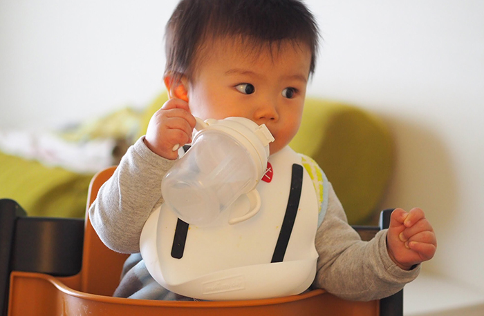 おすわりがさらに安定して、振り向いても倒れなくなり、ずりばいし始める赤ちゃんが多くなります。運動量が増えるにつれて離乳食の量が増えてきますが、食後の母乳やミルクは欲しがるだけ飲ませてかまいません。