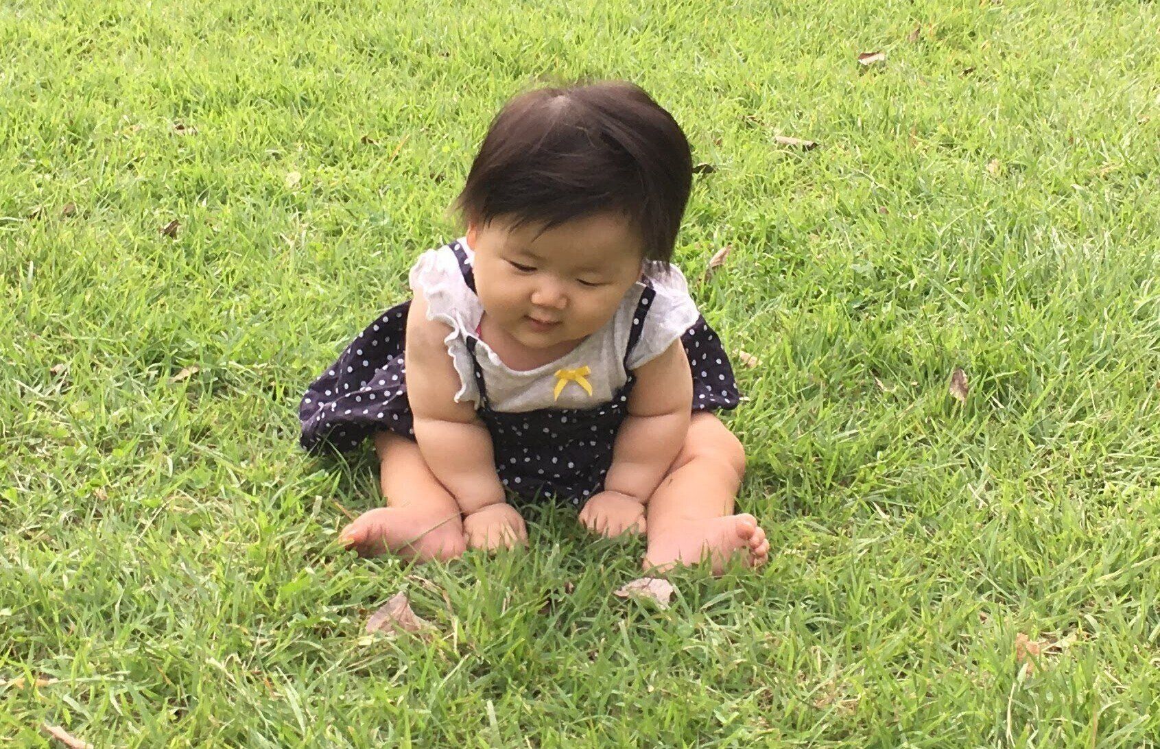 おとは生後6カ月には寝返りができるようになり、生後10カ月ごろには大人がおすわりの姿勢を取らせてあげれば、座っていられるようになっていました。