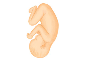 ●体が大きくなるため、多くの赤ちゃんは広い骨盤の中に、大きな頭やおしりを入れて、縦の向きになります。